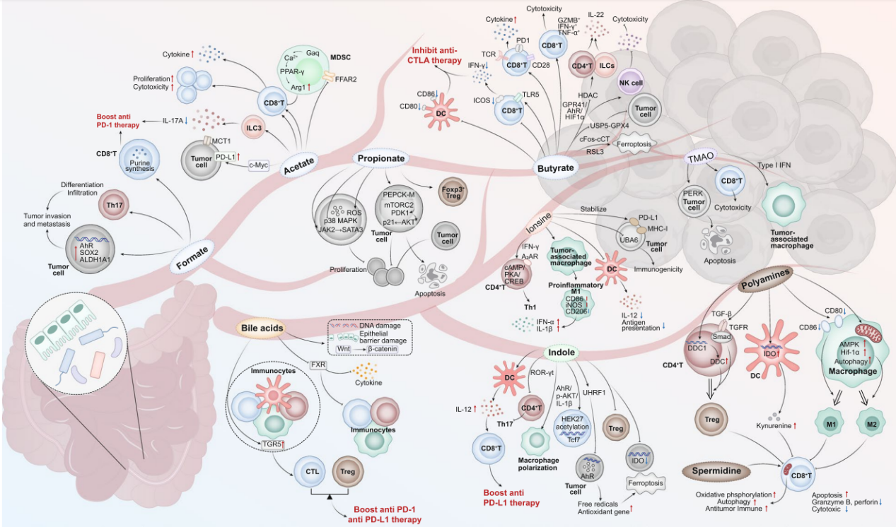 肠道微生物代谢物通过多机制途径影响肿瘤免疫